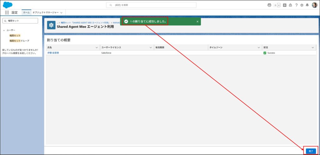 以上で権限セットの割り当ては完了となります。