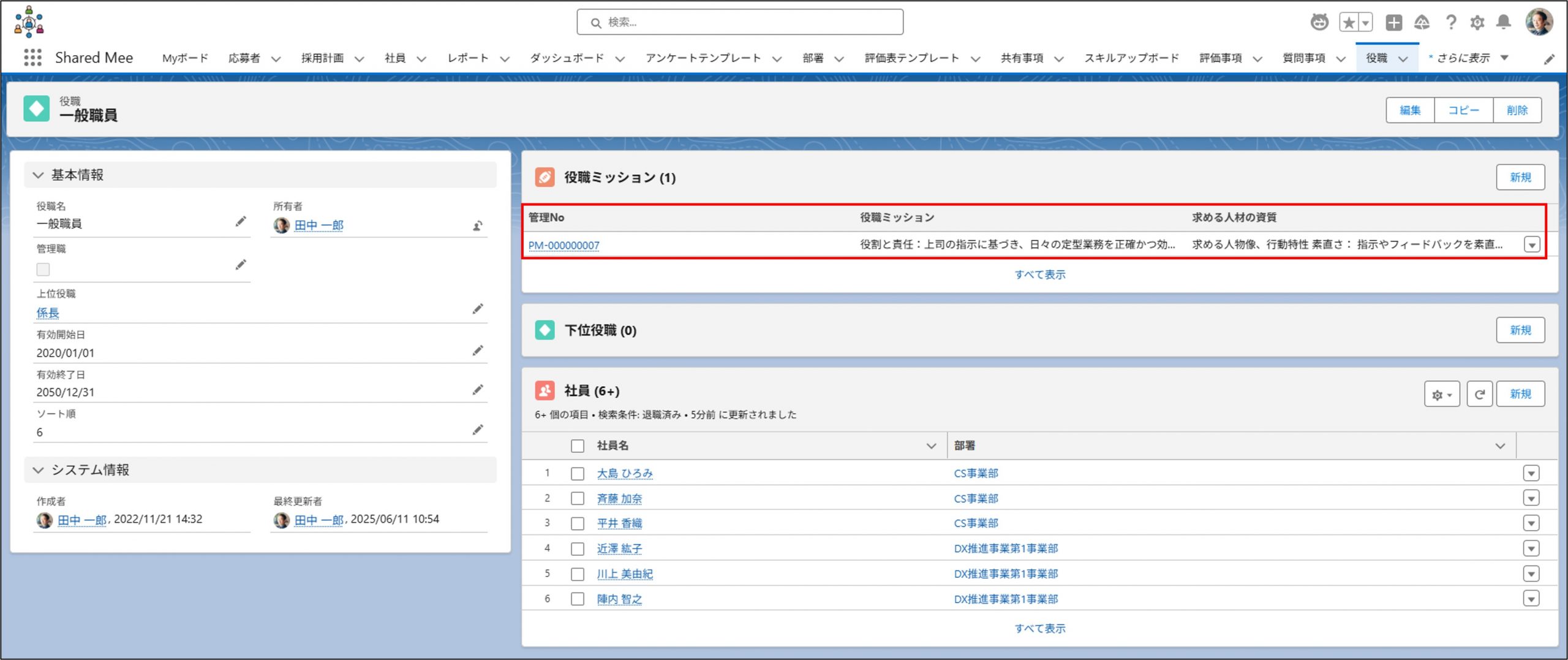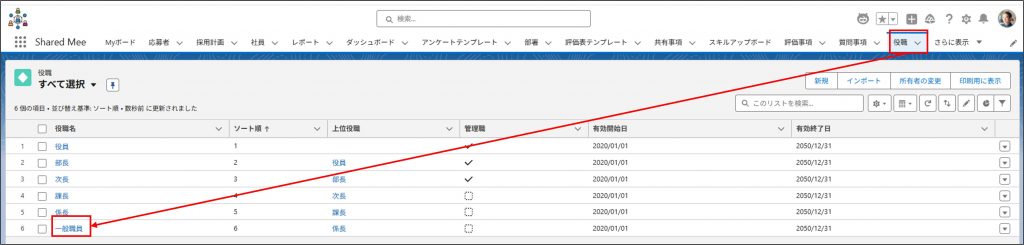 | 役職ミッション | 役職ごとに「何を目指し、どのような価値を提供するか」を分かりやすく示すための指針を入力します。 |
